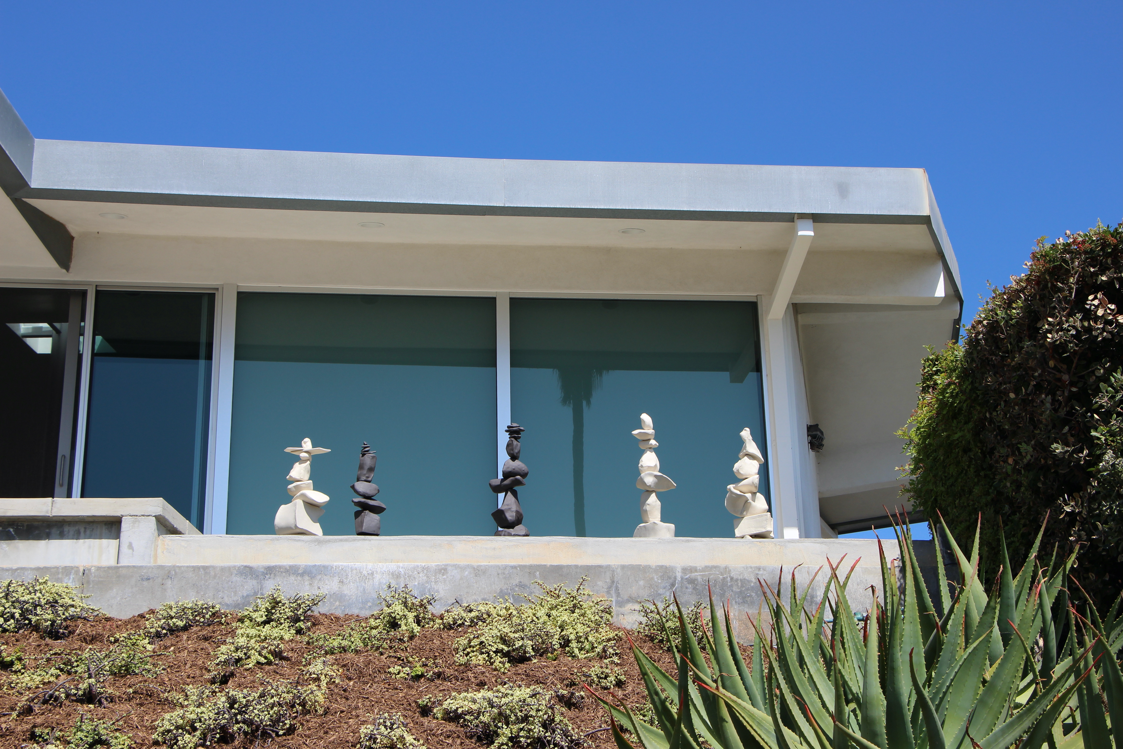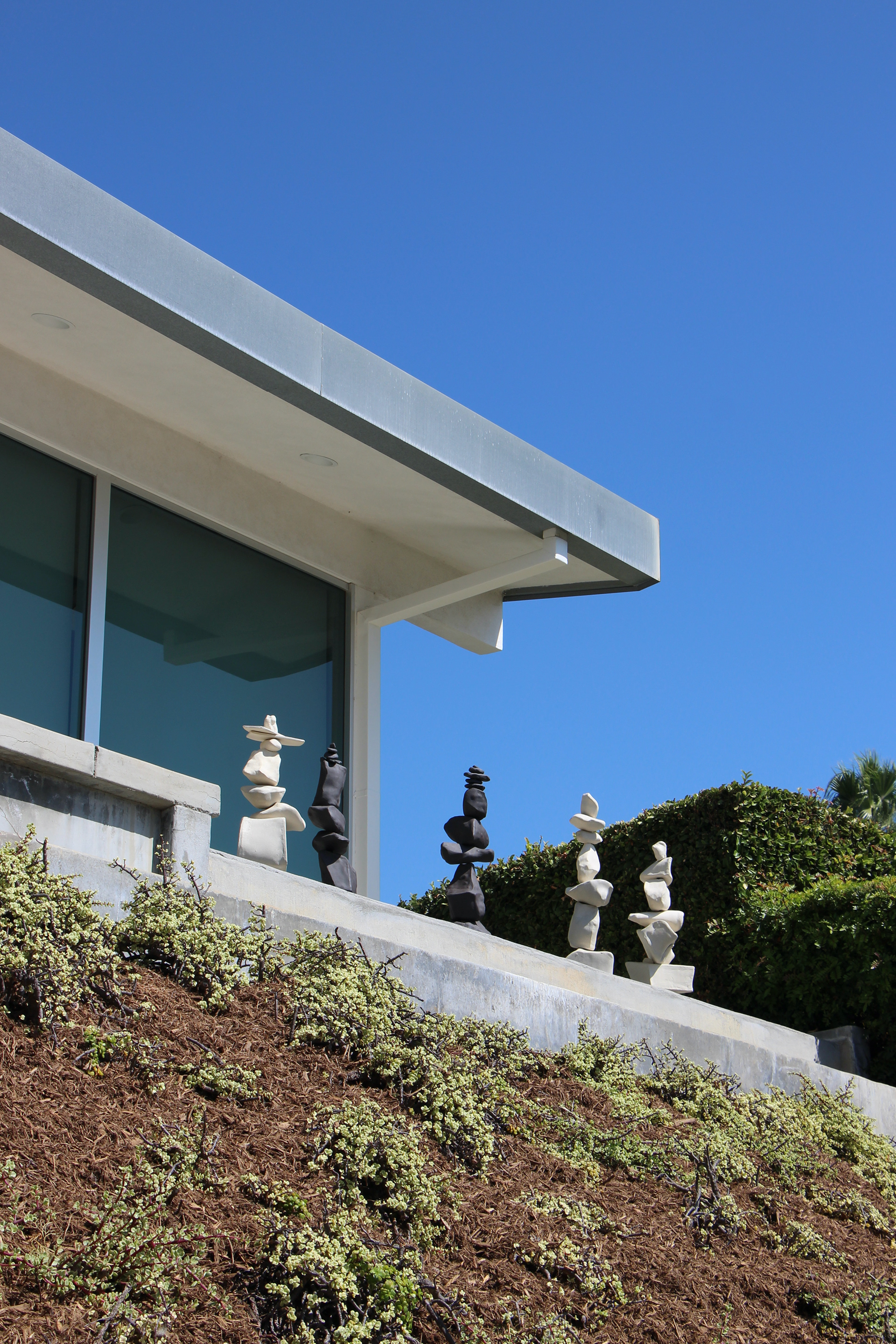 five hand-built tower forms, steel rebar inner, Commission by Sue Keane